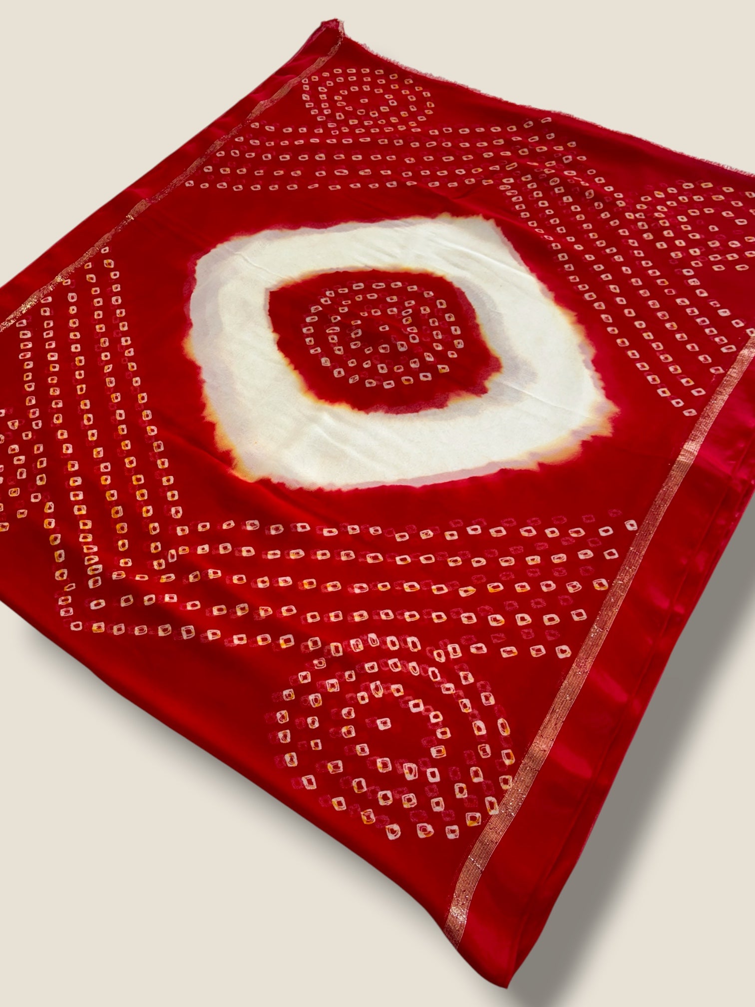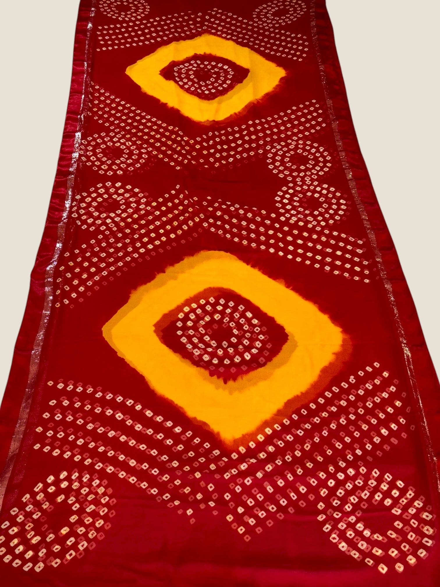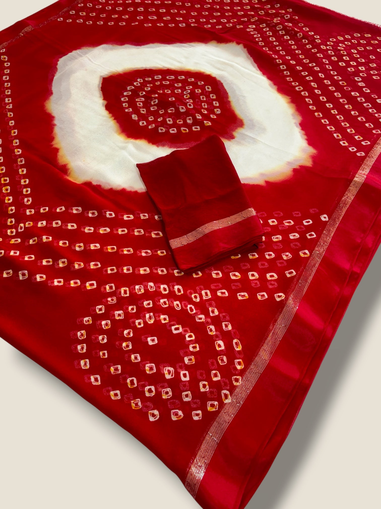 Pure Georgette Bandhani & Batik Saree with Resham Border – Lfariya Fashion