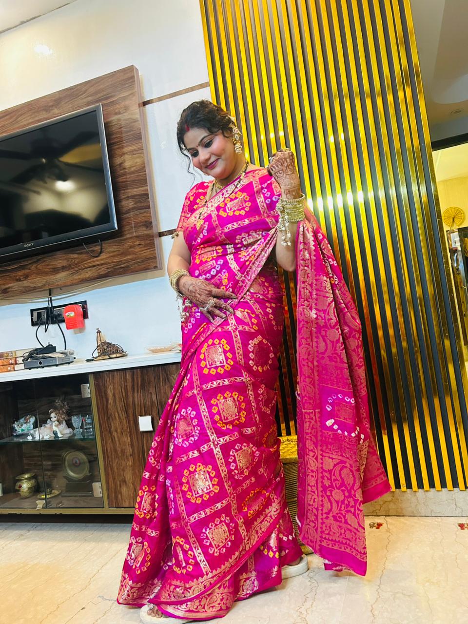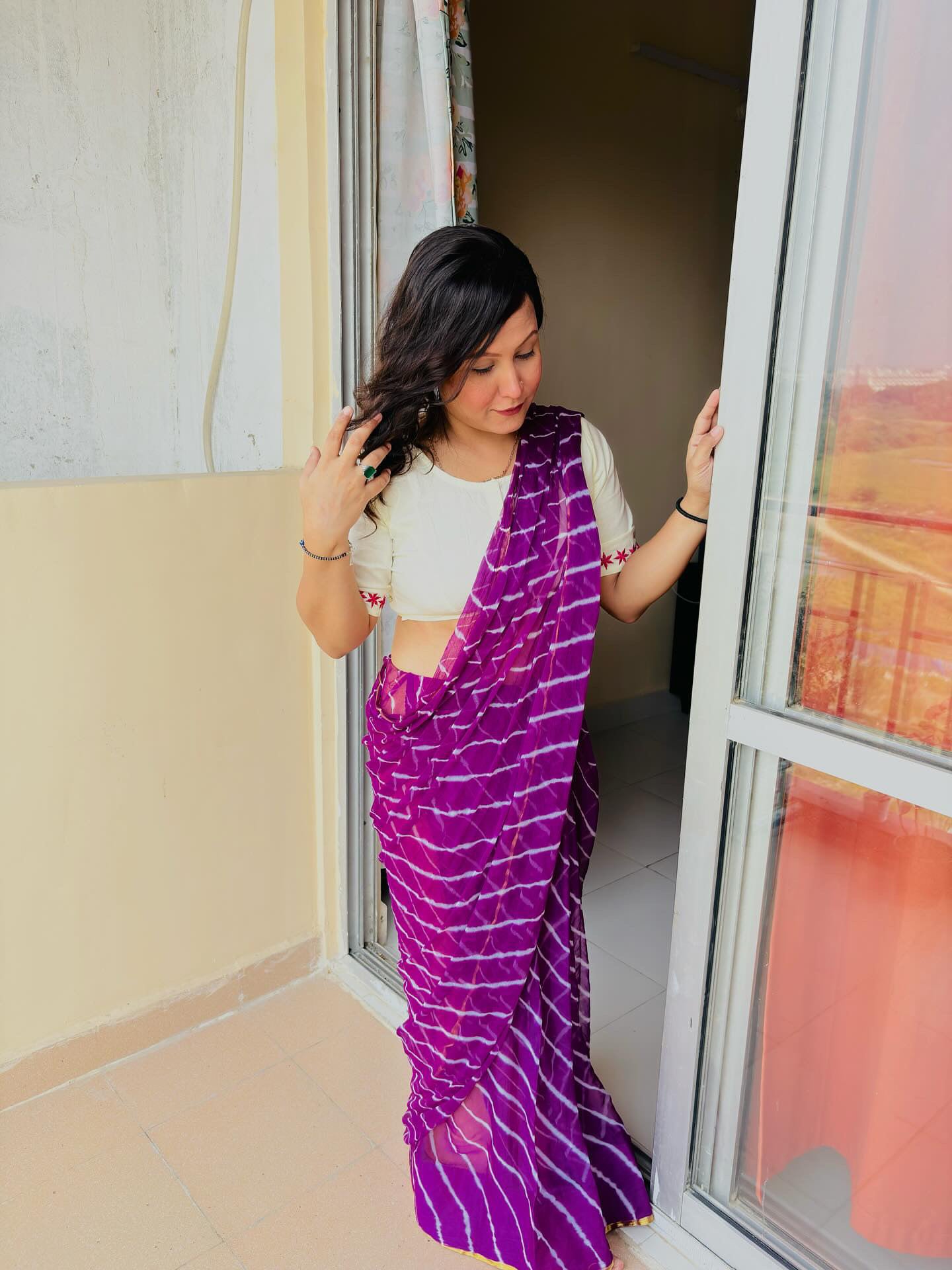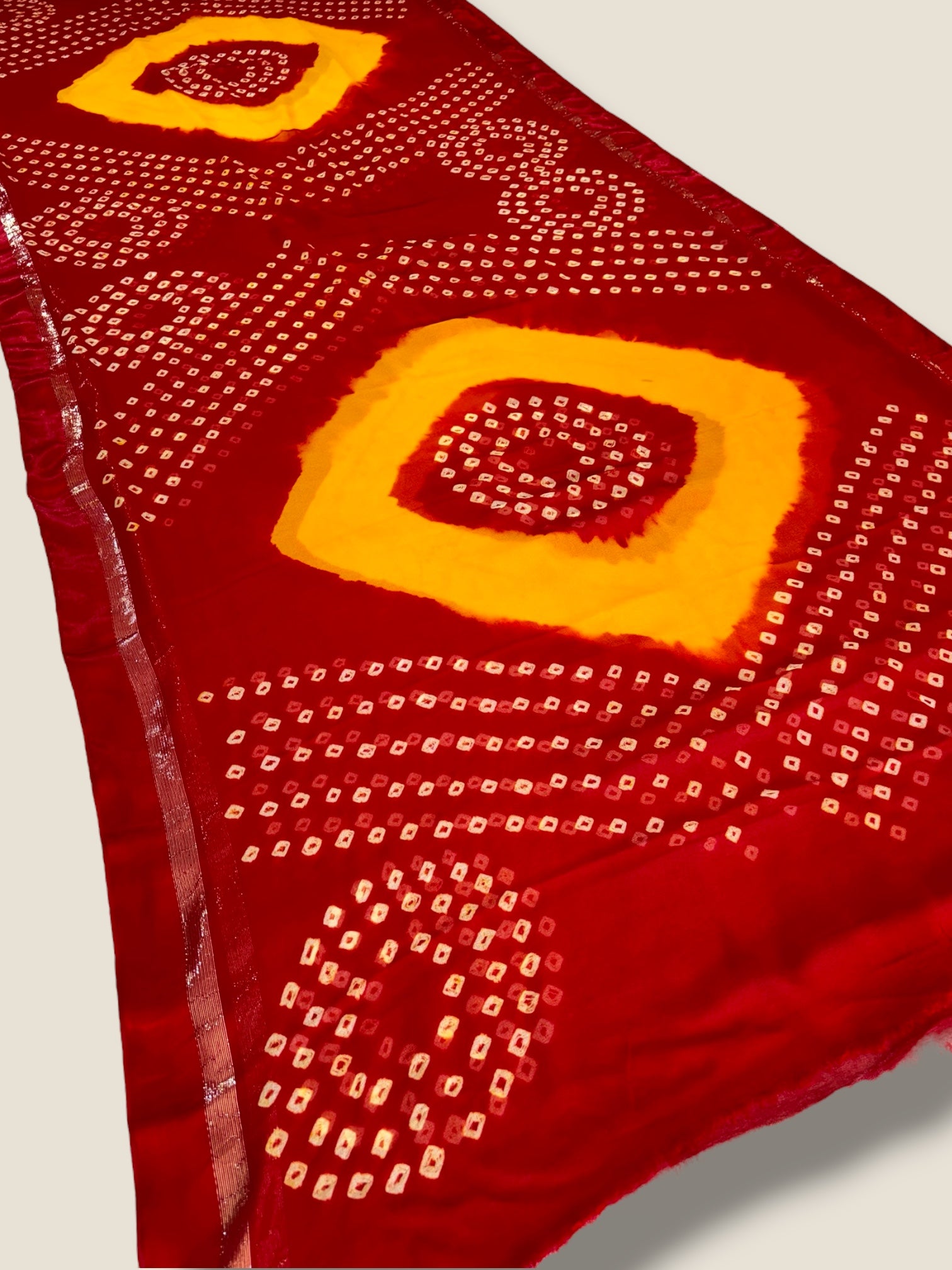 Pure Georgette Bandhani & Batik Saree with Resham Border – Lfariya Fashion